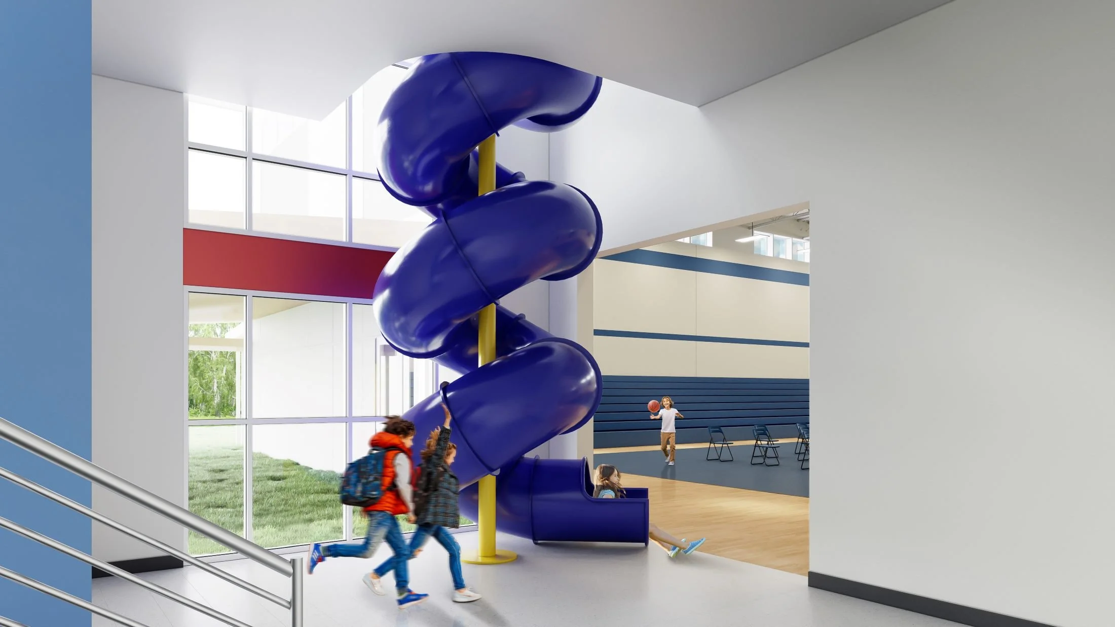 The indoor slide serves as a tangible celebration of the school's commitment to nurturing artistic talent and fostering a dynamic learning environment. Positioned within the heart of the school, this spiral slide is not just a means of descent but a symbol of the boundless possibilities that unfold when creativity is unleashed.